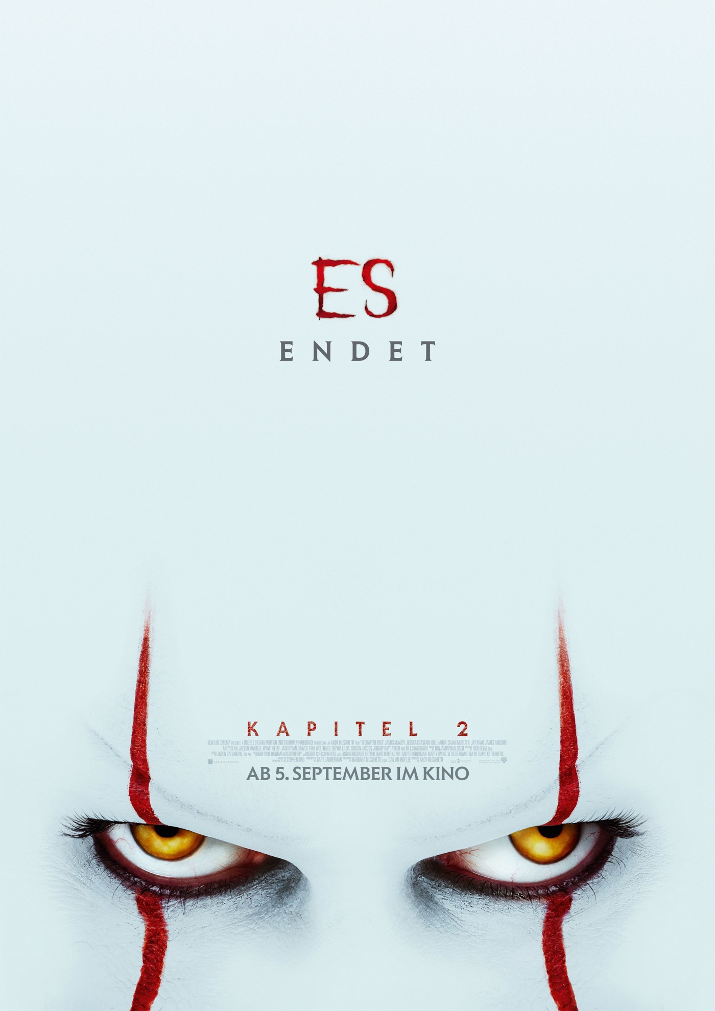 Zwei Jahre nach Andy Muschiettis Überraschungserfolg mit dem ersten Kapitel seines ‚Es‘-Remakes will er die Geschichte um Pennywise und den Losers Club aus Derry nun zu einem Ende führen. Sowohl Fans des Buches und auch die meisten Kritiker waren von der Wuchtigkeit des Erstlings begeistert. Wo die Fernsehproduktion mit Tim Curry noch als weichgespülte TV-Unterhaltung galt, kam Muschietti mit einem ernstzunehmenden Film um die Ecke. Da nach 27 Jahren die Morde und Vermisstenanzeigen in Derry wieder vermehrt auftreten und sich der nun erwachsene Mike sicher ist, dass der bösartige Clown wieder sein Unwesen treibt, müssen die Mitglieder des Loosers Clubs ihr Versprechen einhalten und erneut gegen Pennywise antreten. Direkt die Opening-Sequenz macht keine Gefangenen. Denn zuerst werden wir mit der immer noch völlig heruntergekommenen und noch bösartigeren Jugend der Kleinstadt konfrontiert und nur wenige Augenblicke später tritt schon der geschminkte Dämon auf den Plan. Brutal und erbarmungslos gibt der Regisseur den Grundton des Films an. Abgerundet vom verstörenden Titelschriftzug unterlegt mit unter die Haut gehenden Kinderschreien.